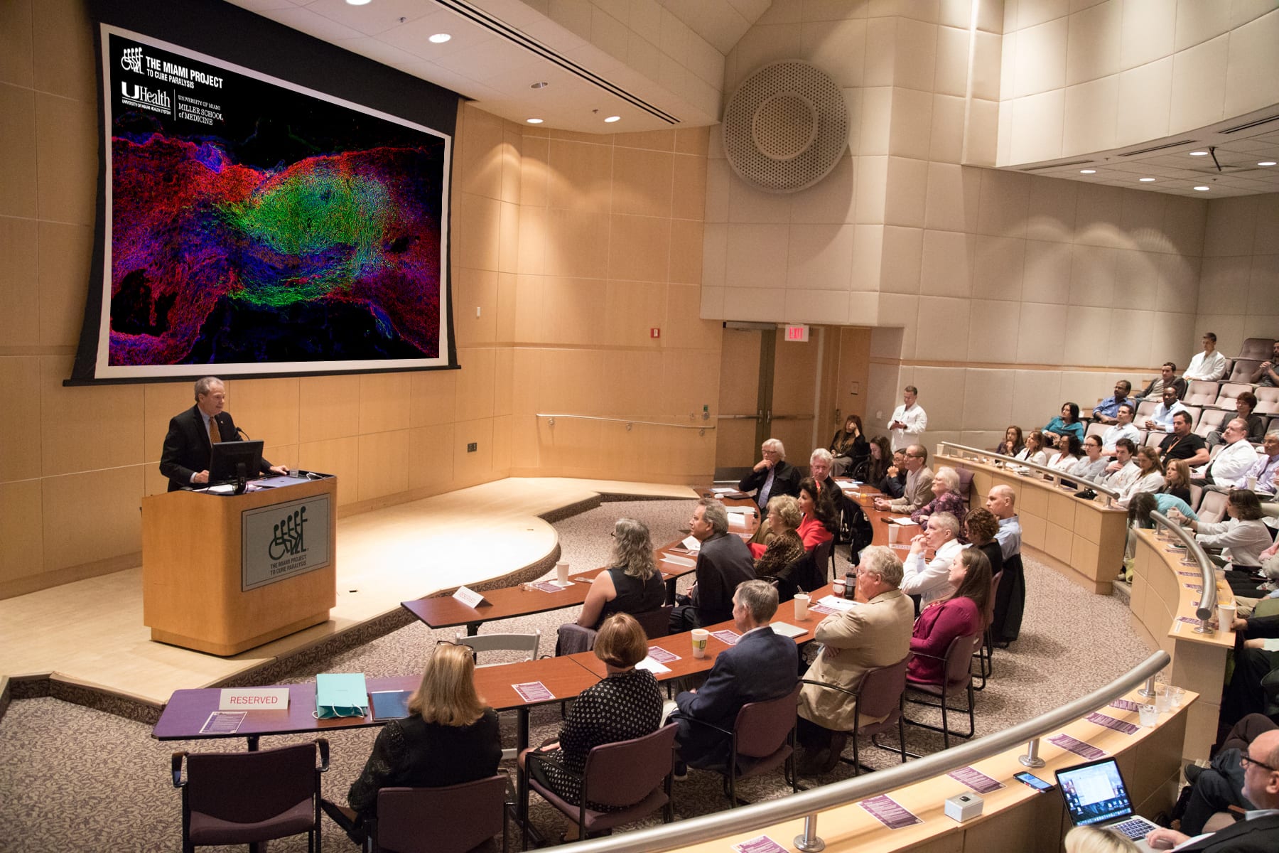The Miami Project, a Center of Excellence at the University of Miami Miller School of Medicine, is now considered one of the premier research programs conducting cutting-edge discovery, translational and clinical investigations targeting traumatic spinal cord and brain injury, and other neurological disorders. The Miami Project’s international team of over 175 scientists, researchers, clinicians and support staff is dedicated to improving the quality of life and, ultimately, finding a cure for paralysis. Miami Project researchers are currently conducting clinical studies and trials in spinal cord injury, including testing neuroprotective strategies, cellular therapies using Schwann cell and stem cell transplantation and advanced rehabilitation and neuromodulation approaches including the use of brain machine interface technologies. Other areas of current research include drug discovery for axonal regeneration and immune modulation, neuropathic pain, male fertility and cardiovascular disorders.