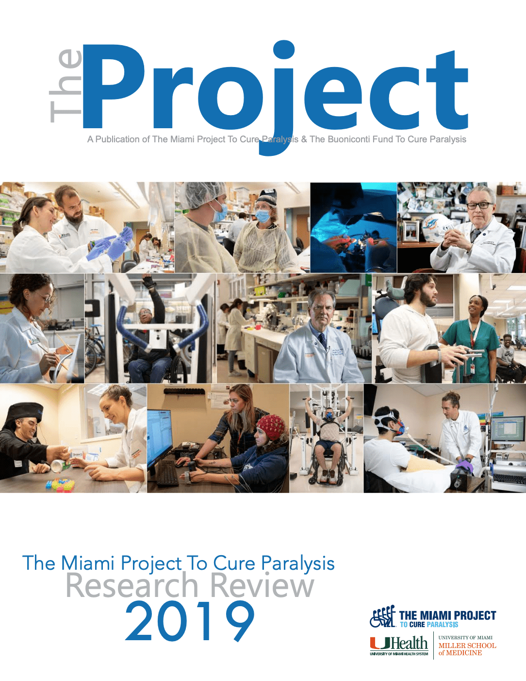 The Project, published bi-annually, is the official magazine of The Miami Project and The Buoniconti Fund and are available electronically. Our Annual Research Review summarizes a selection of research publications from the past year.