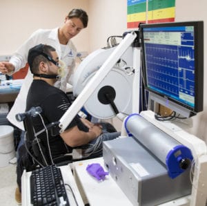 Research in the area of neurophysiology focuses on how the nervous system functions. Scientists at The Miami Project use neurophysiological tests to investigate impulses between nerve cells and their communication with muscles to control voluntary movement.